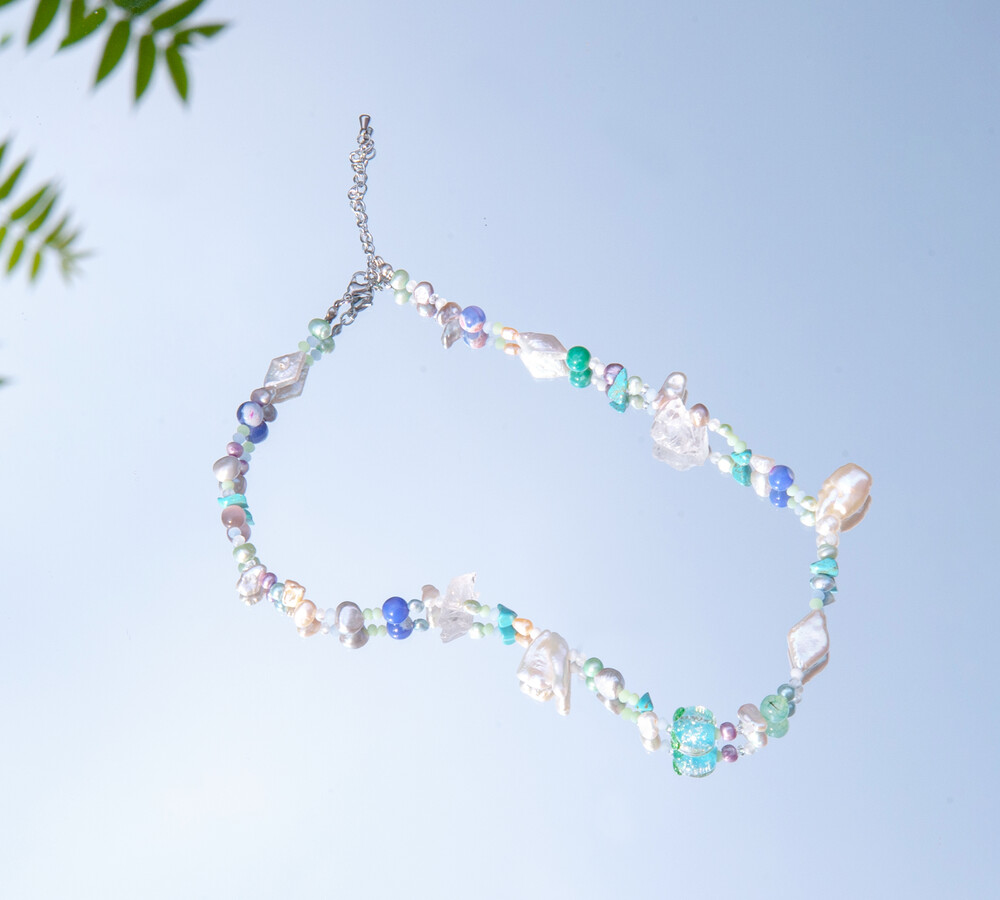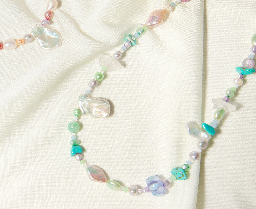 *정원형이 아닌 불규칙적인 형태의 자재 (진주, 원석, 핸드메이드 레진 등등) 으로 디자인되었습니다. 천연 소재 특성상 모양과 크기가 균일하지 못하여 납작하거나 울퉁불퉁한 표면과 형태의 진주도 존재합니다. 핸드메이드와 자재 특성상 오차범위가 ±1-2cm 정도 있을 수 있습니다. 위 사항 불량이 아니므로 교환/반품 사유에 해당하지 않습니다.