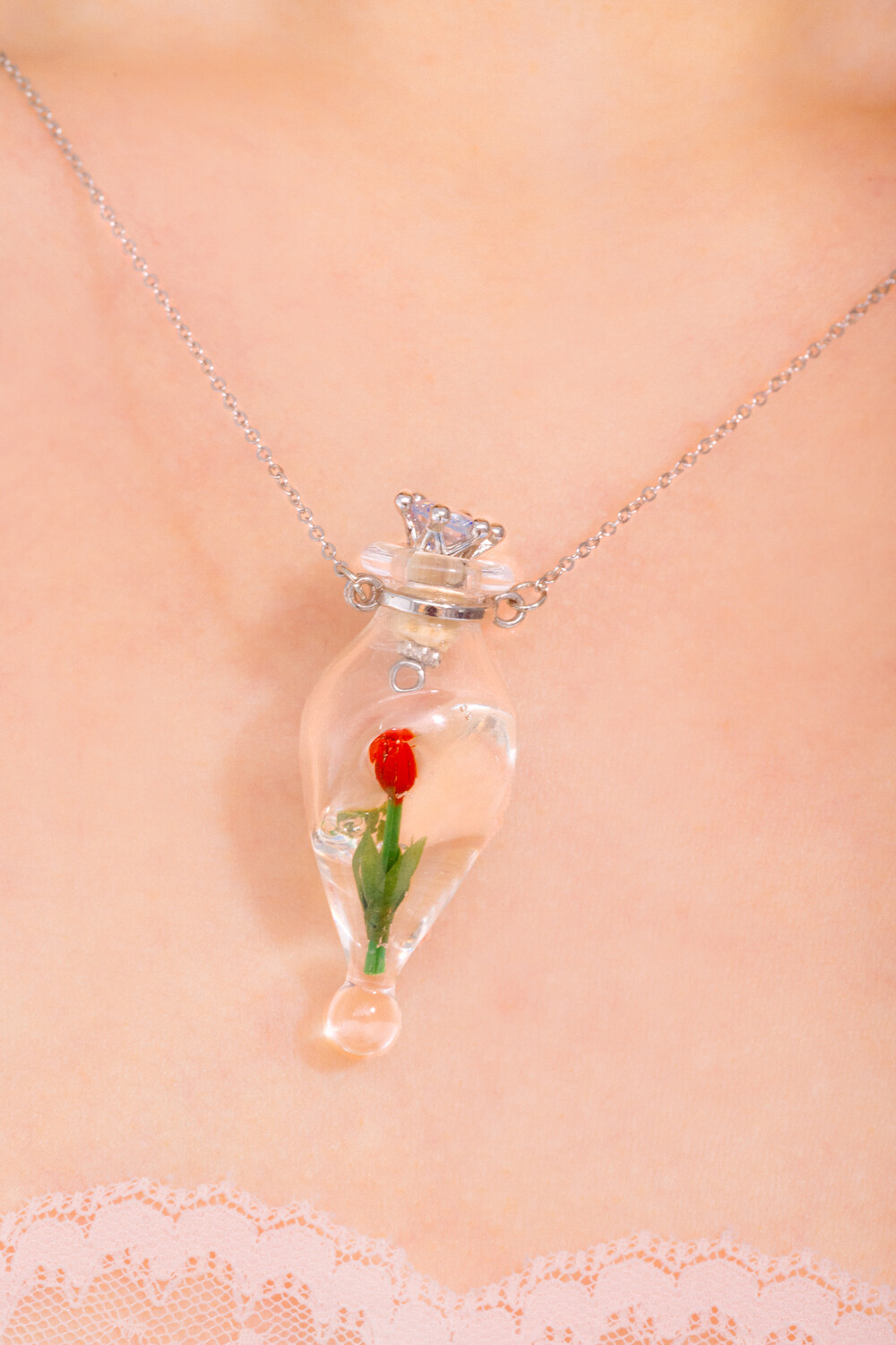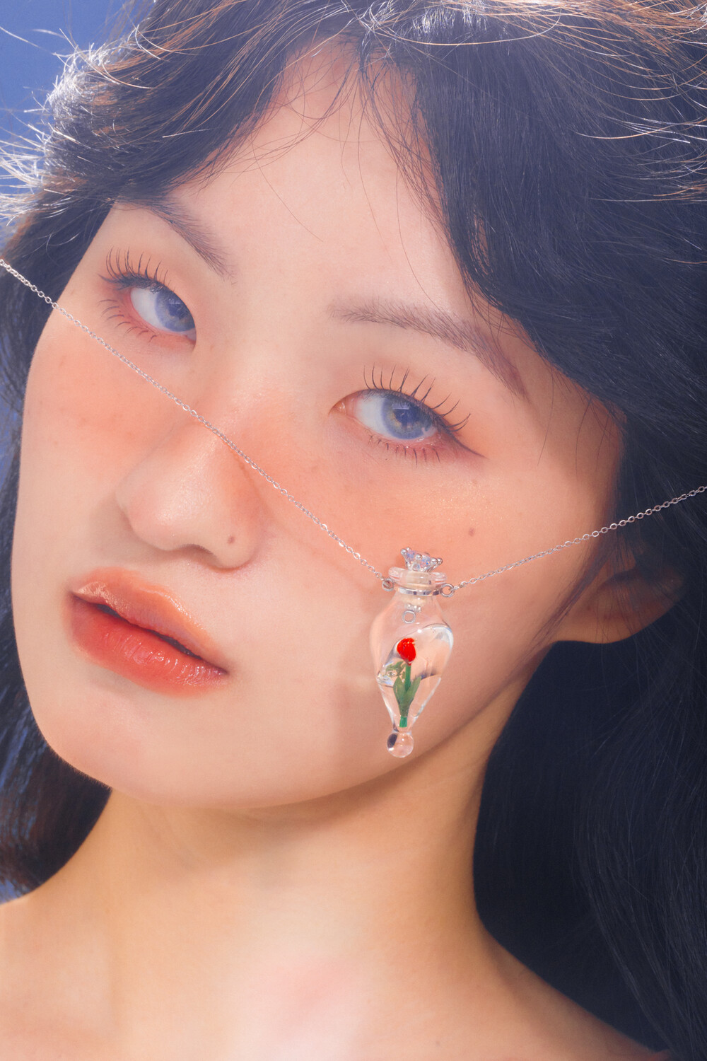 유리 하트 포션 안에는 물에 잠긴 꽃 형태의 아트가 연출되어 있습니다. 흐르는 액체인 듯한 착시 현상이 매력적인 상품입니다. 뚜껑을 여닫을 수 있습니다.