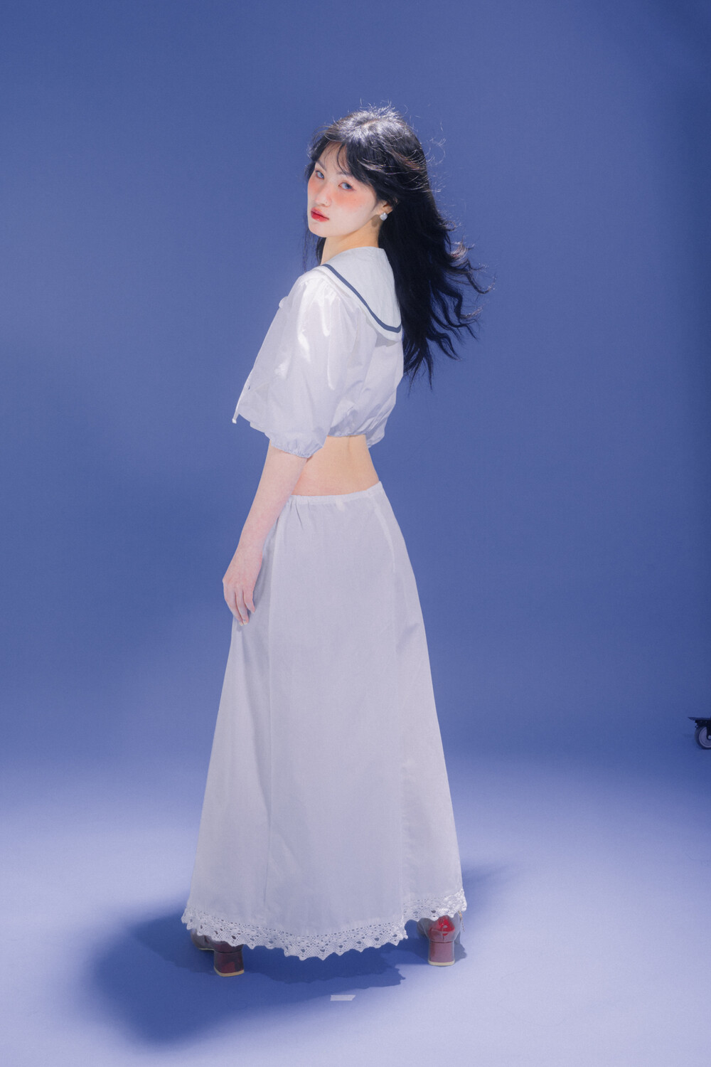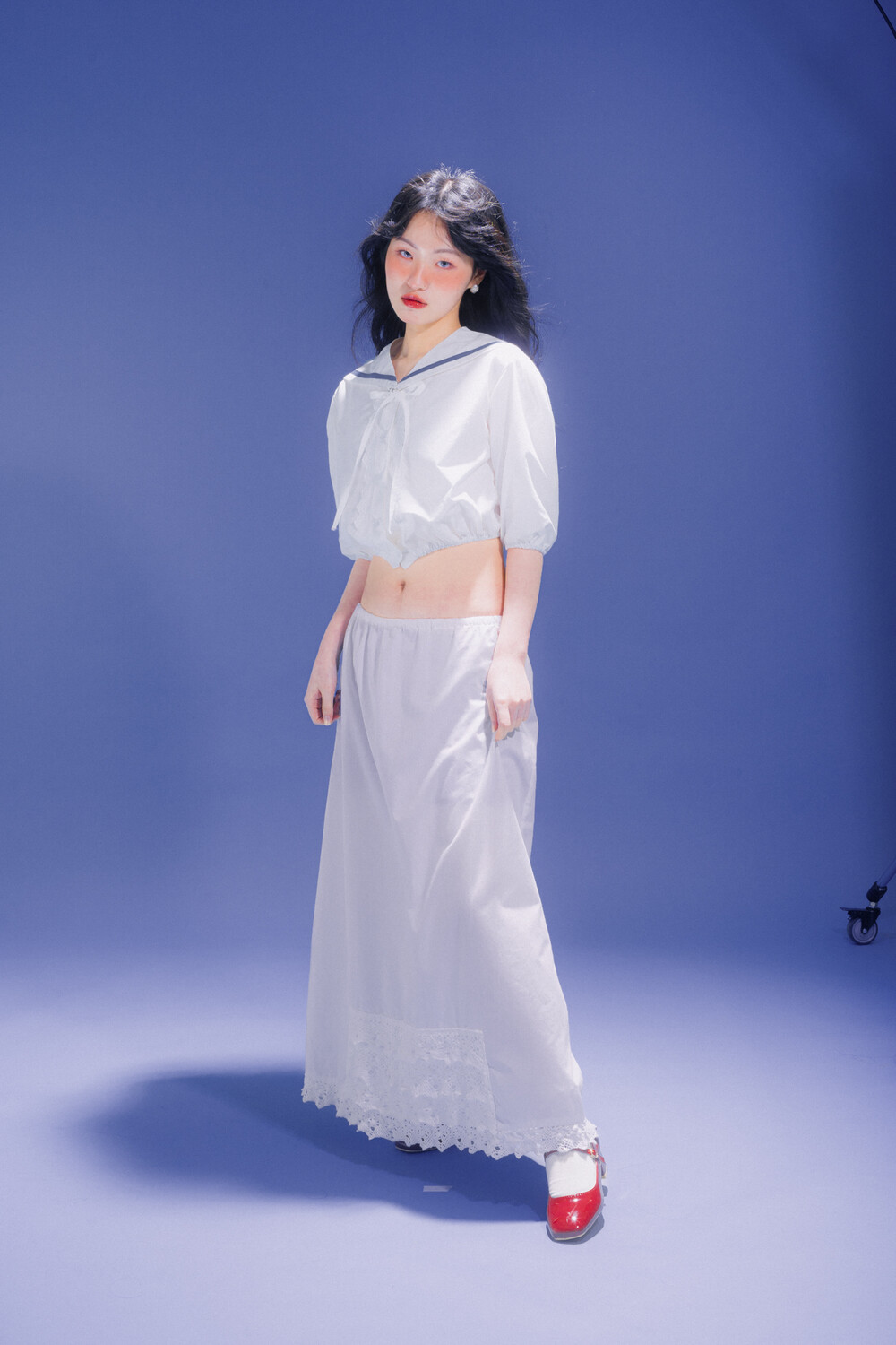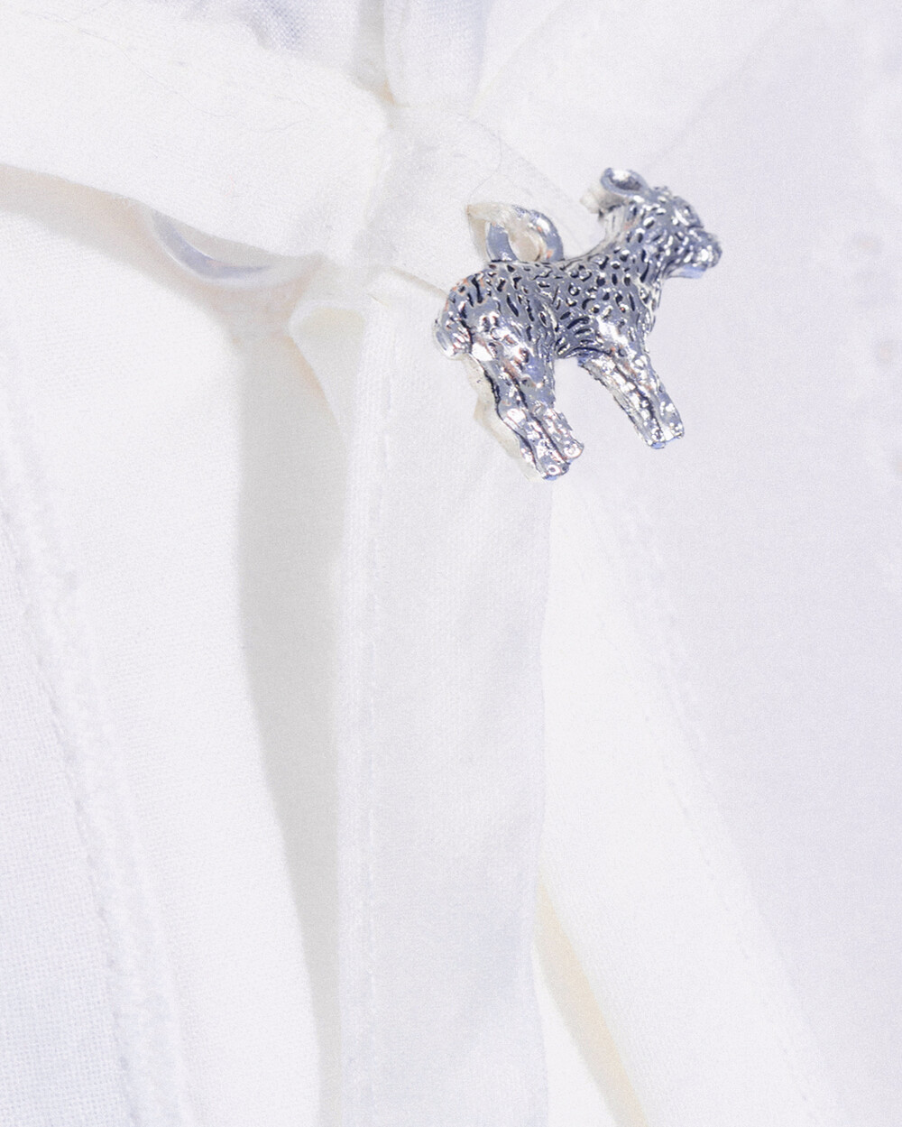 Crop Puff Blouse와 동일한 원단으로 제작되어 이질감 없이 함께 착용 가능합니다. 카라 앞쪽에 달린 고리를 통해 쉽게 착용 및 탈착이 가능하며, 고리 부근에는 염소 팬던트가 달려 있어 러블리함을 더합니다. 차분하고 빈티지한 느낌을 표현하기 위해 톤 다운된 블루를 셀렉 하였습니다. 절제된 키치함으로 특별한 데일리룩을 연출해 보세요.