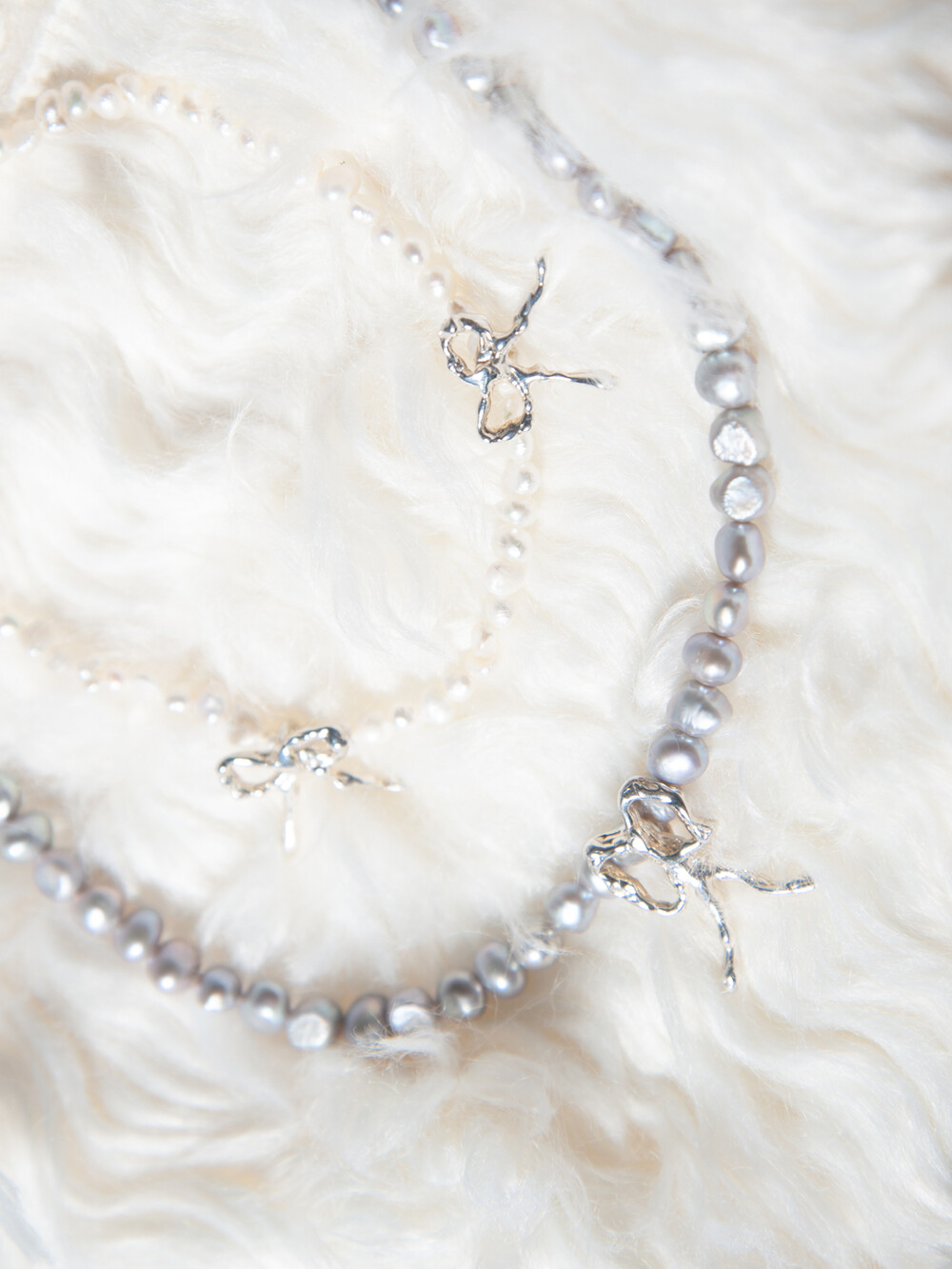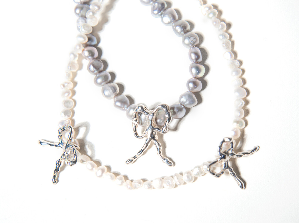 각도에 따라 은은한 오로라 빛을 담고 있는 흰색 담수 진주 입니다. 리본 팬던트와 4mm의 작은 담수 진주 조화가 매력적입니다. 데일리 아이템으로 추천드립니다.