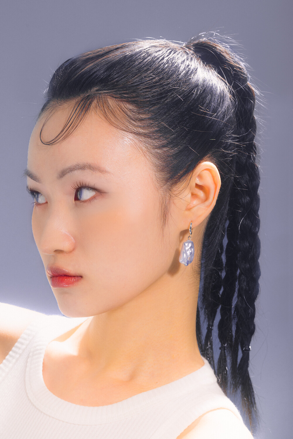각도에 따라 은은한 오로라 빛을 담고 있는 회색 담수 진주 입니다. 925 실버 귀걸이 부자재로 제작 되었습니다.