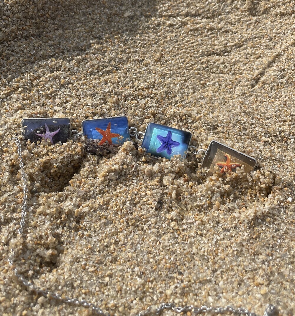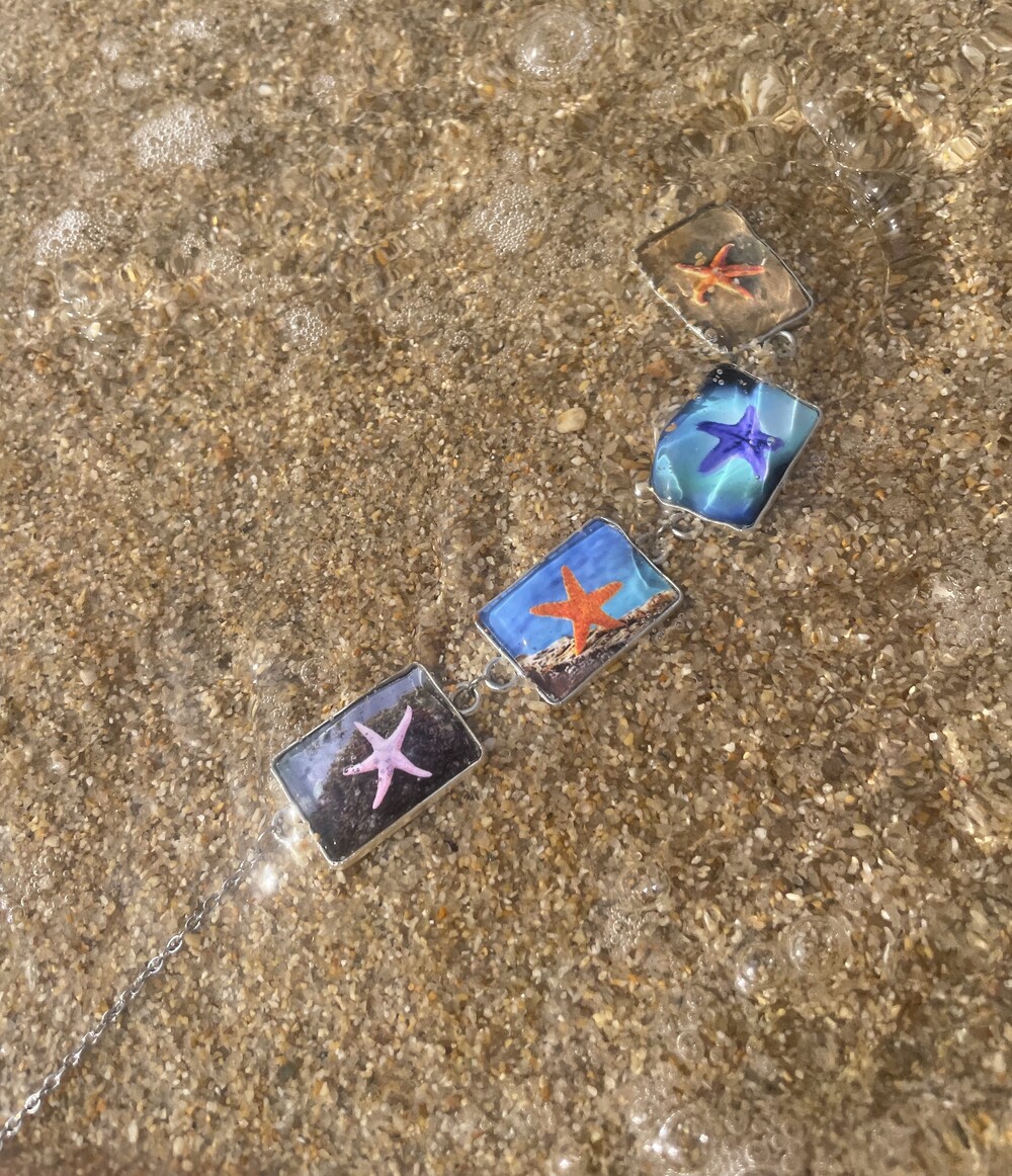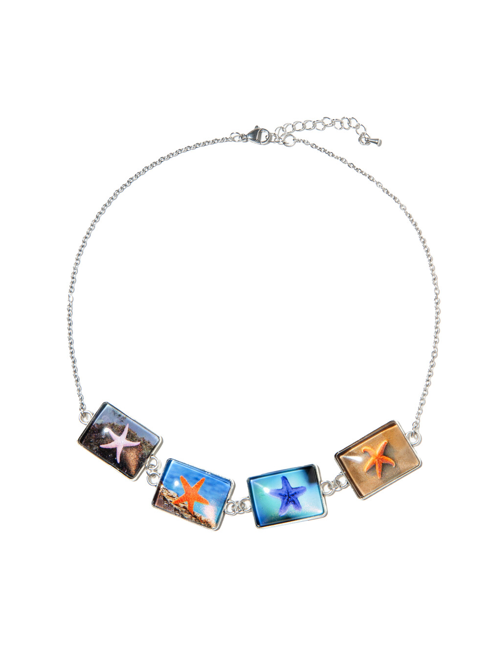 DESCRIPTION 시원하고 자유분방한 느낌의 불가사리 이미지가 반복적으로 디자인되어진 초커 네크리스입니다.