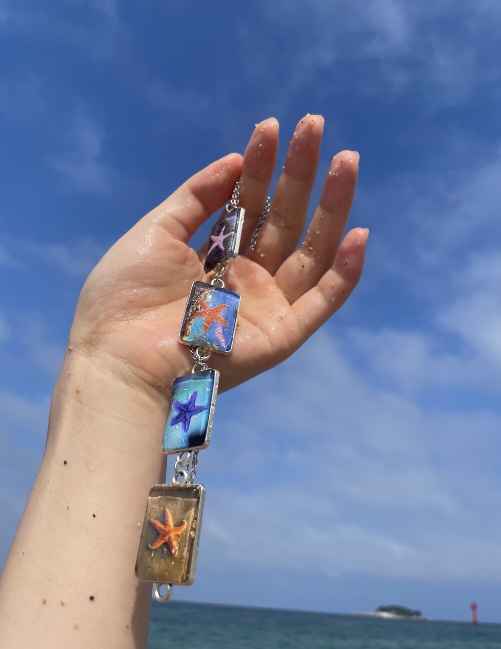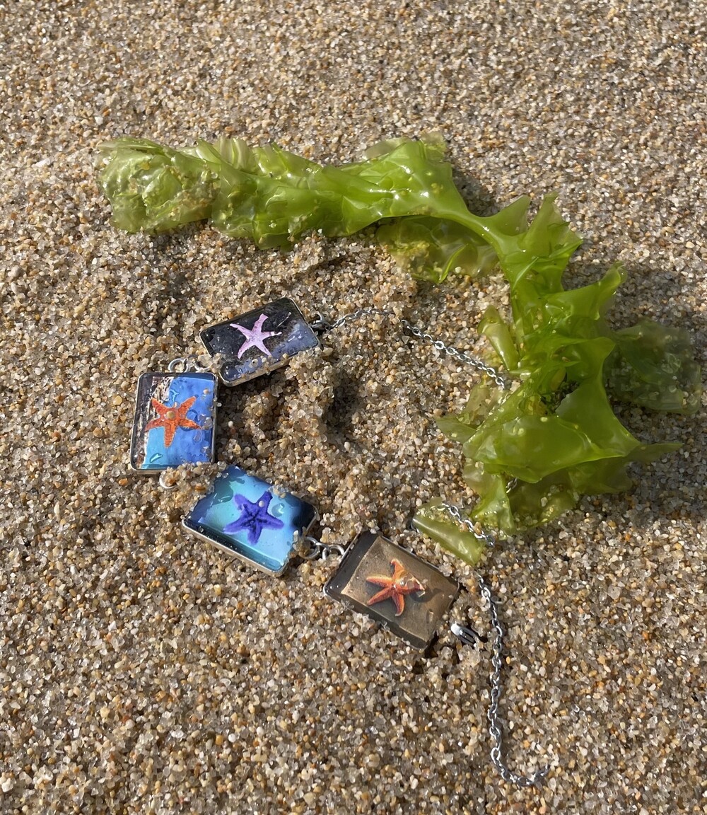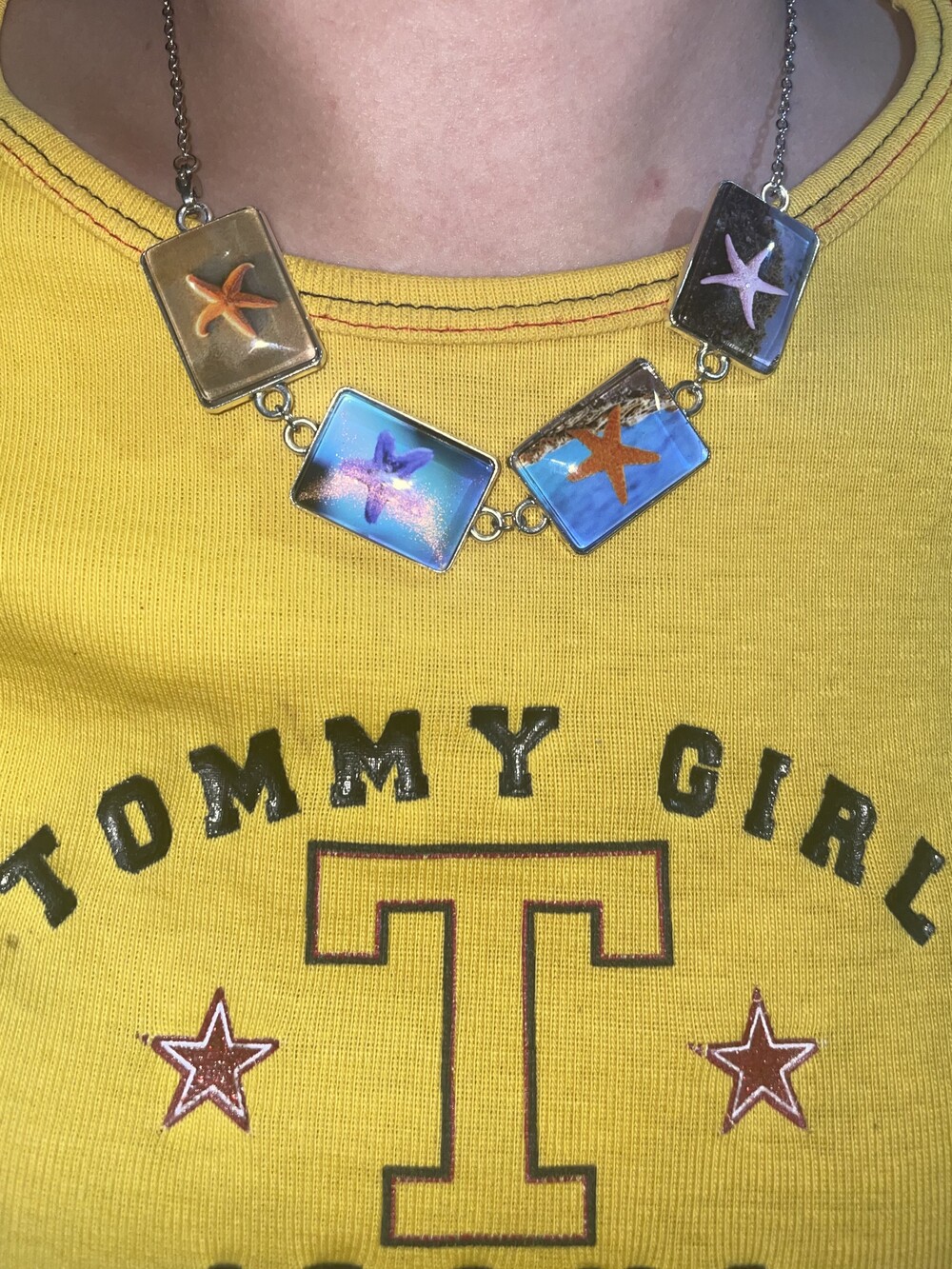 DESCRIPTION 시원하고 자유분방한 느낌의 불가사리 이미지가 반복적으로 디자인되어진 초커 네크리스입니다.