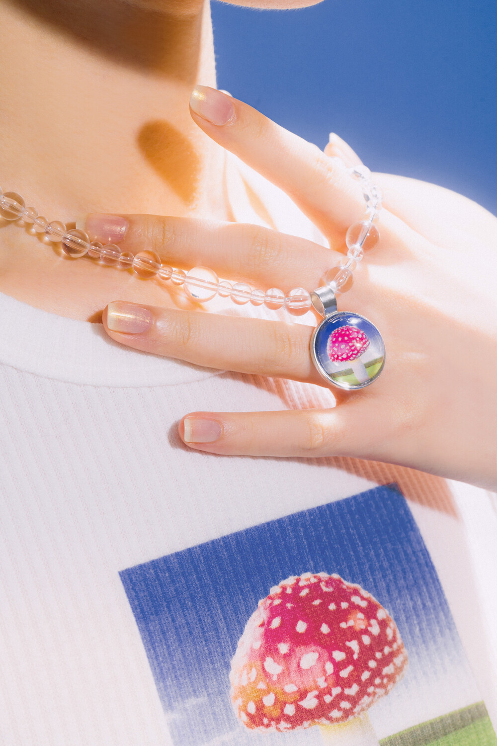 백수정이 주는 투명감은 새벽 이슬을 떠올려, 숲 속 버섯 디자인 일러스트와 잘 어우러집니다.