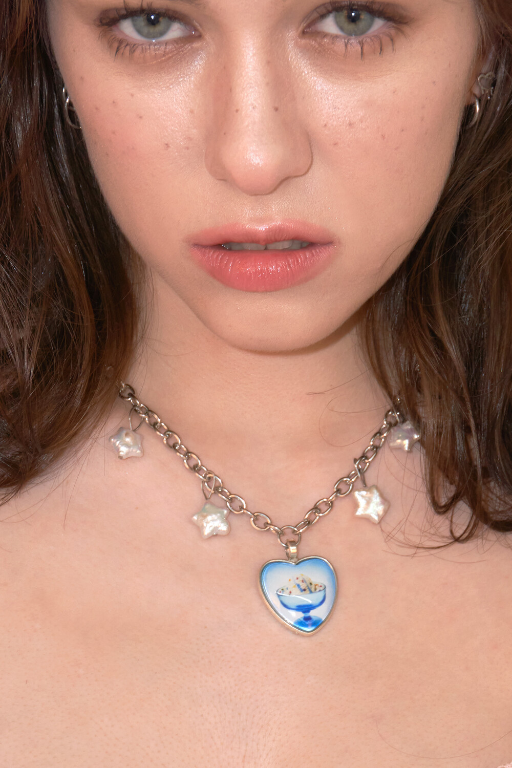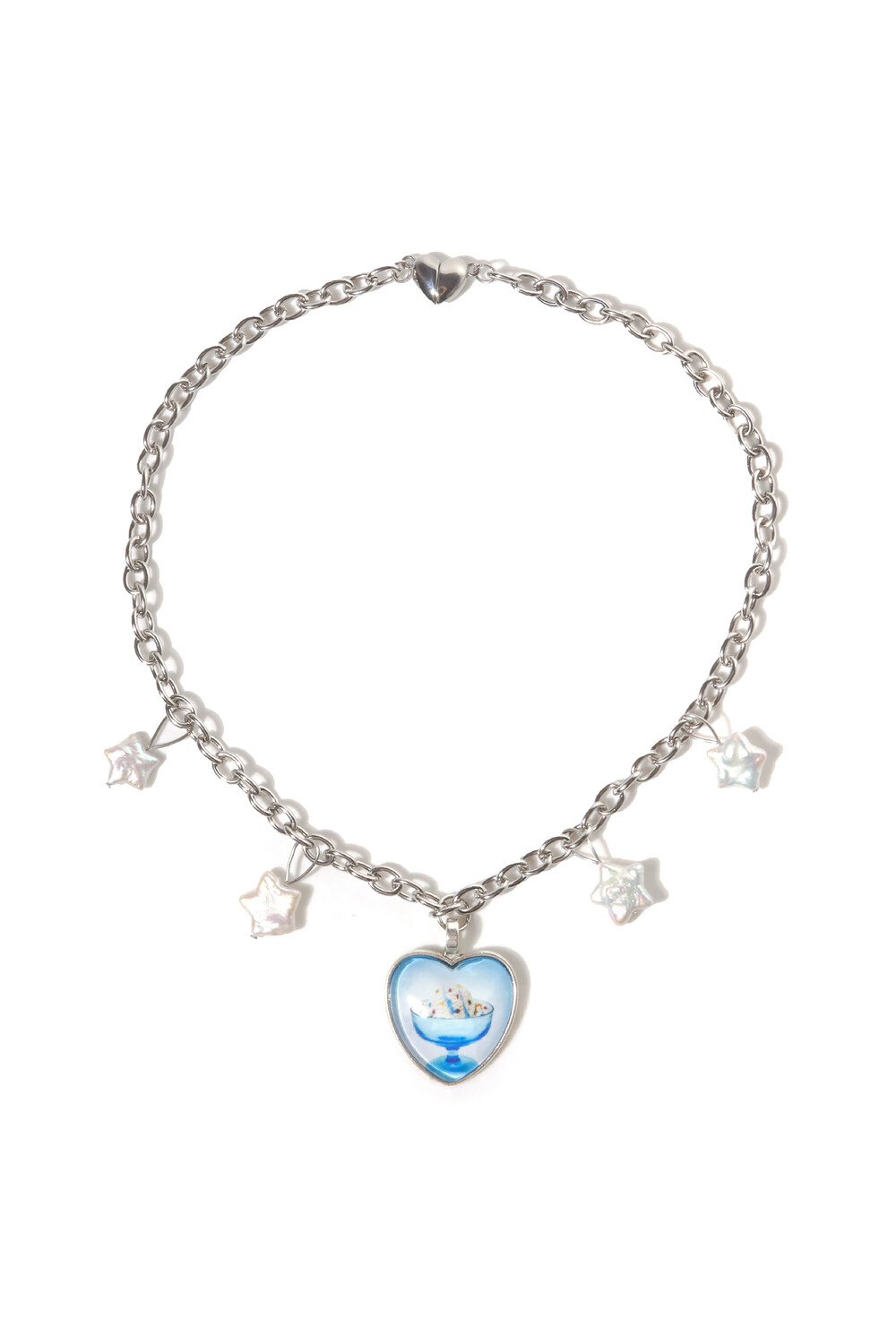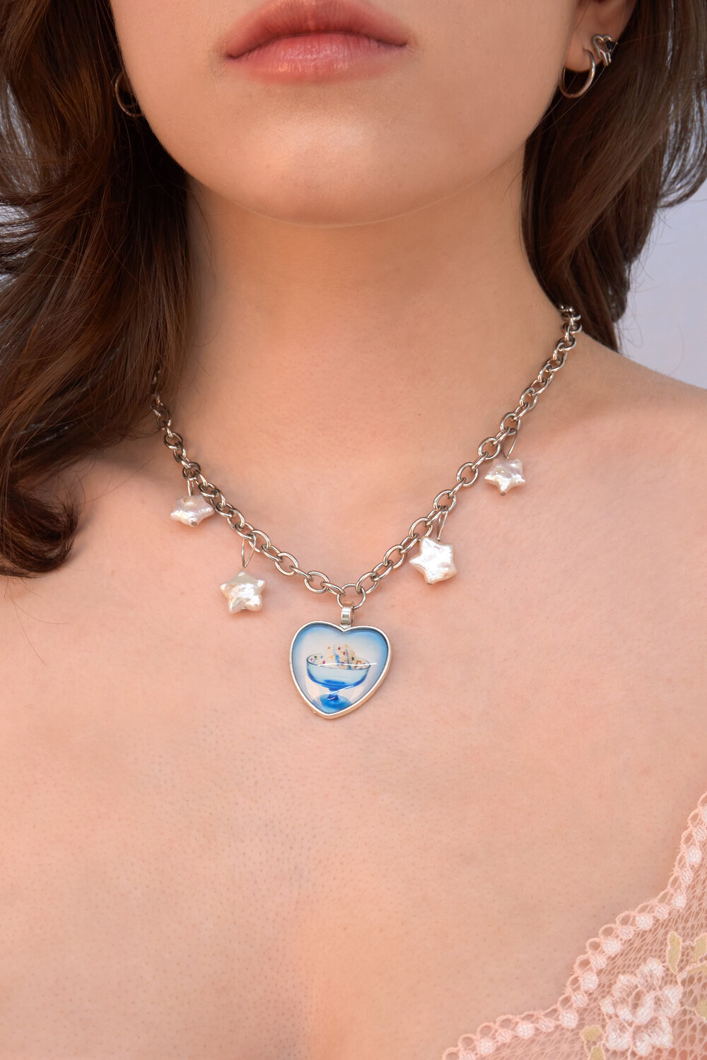 시원한 이미지의 푸른 디저트 팬던트와 어우러지는 별 모양 담수진주가 포인트입니다.