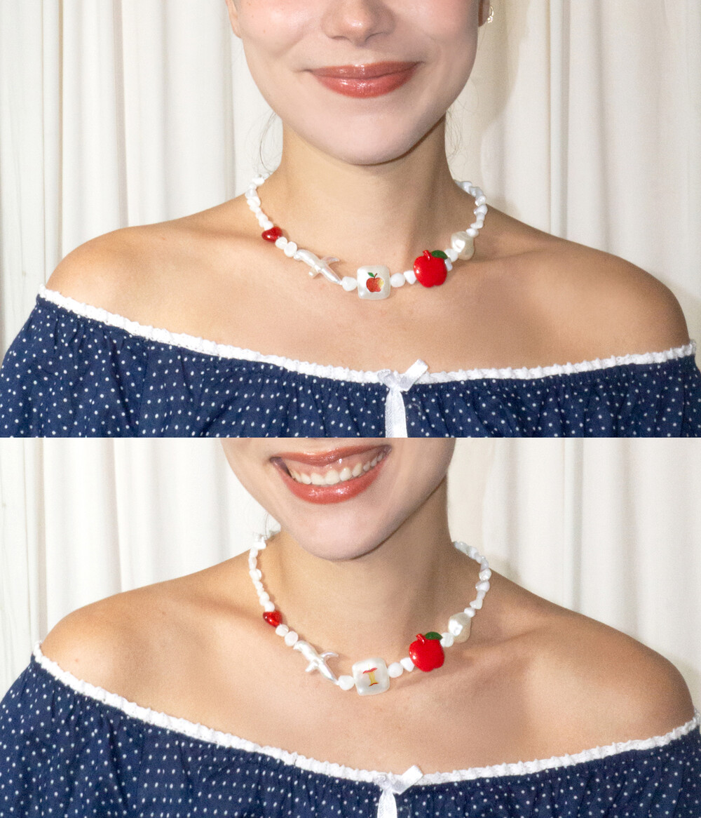 갓 딴 사과를 싱그럽게 베어무는 느낌을 연상하며 제작한 참 네크리스입니다.