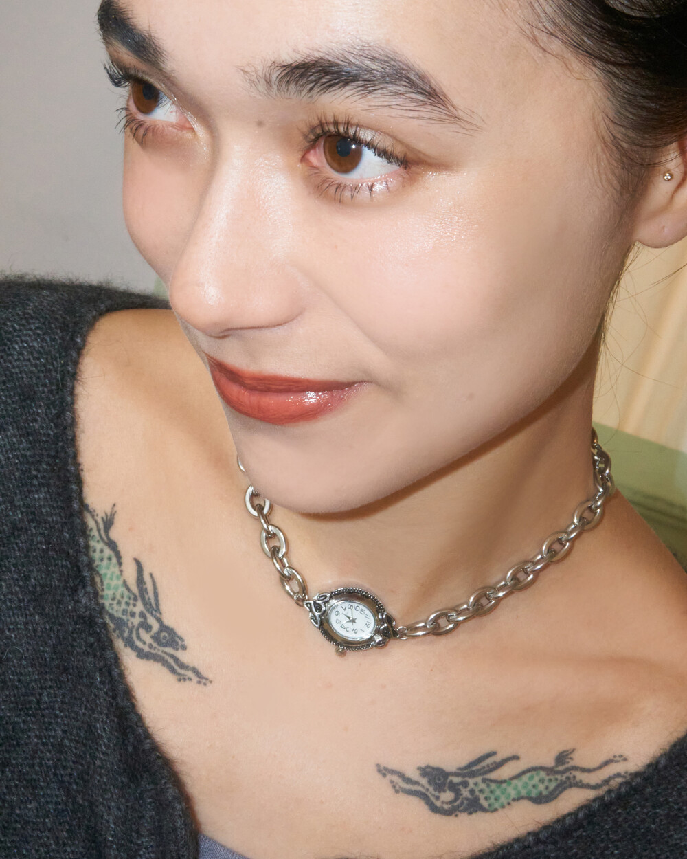 실제 시계 팬던트를 활용한 재미있는 네크리스 디자인입니다.