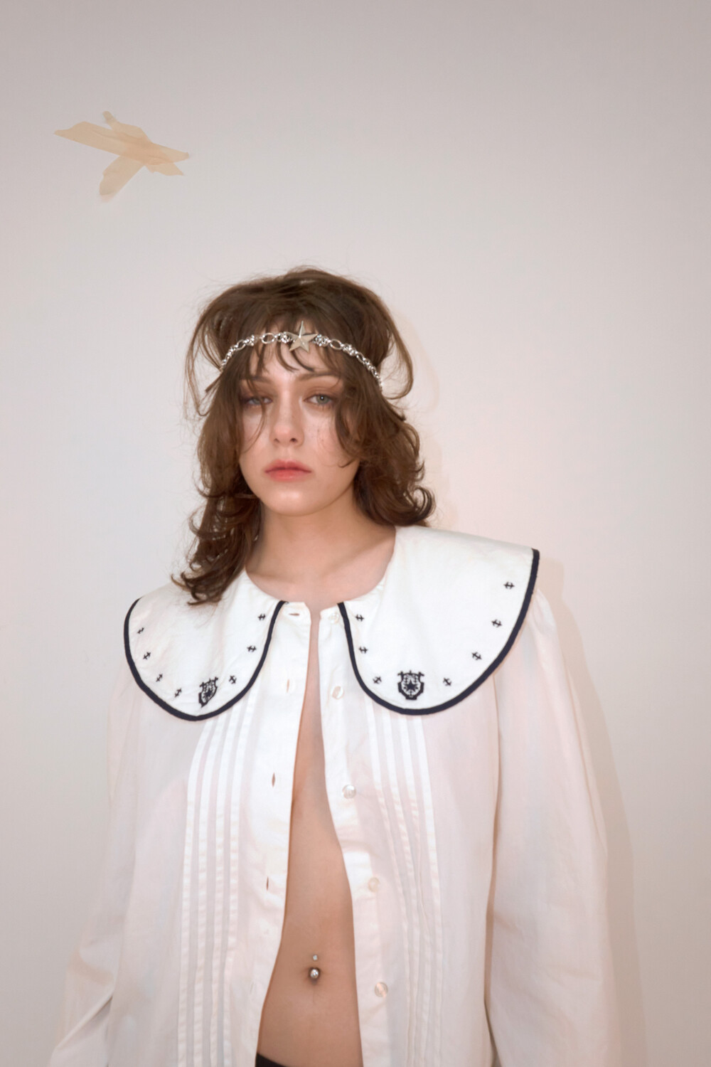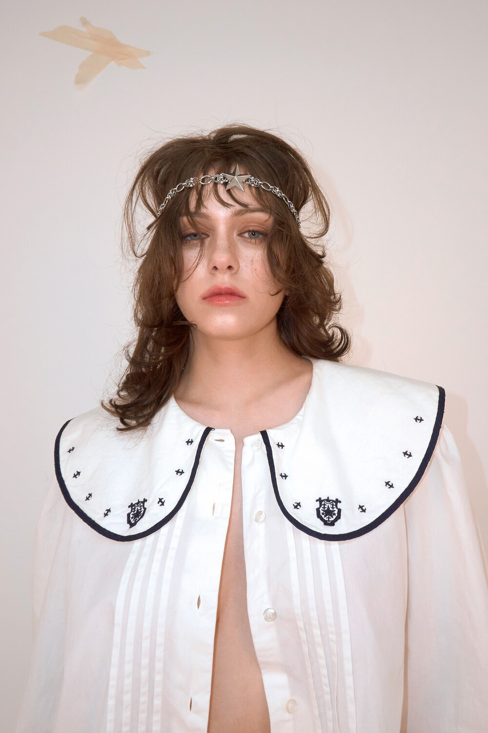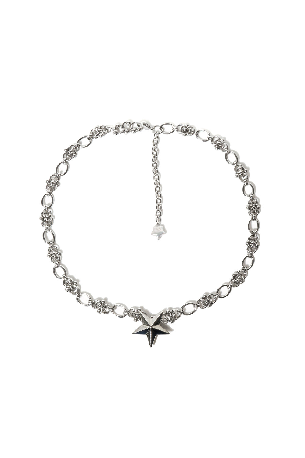 피어싱을 형상화한 볼드한 체인에 별모양 팬던트가 포인트로 배치되어 있습니다. 넉넉한 길이로, 머리 둘레에 맞게 조절하여 착용이 가능합니다.