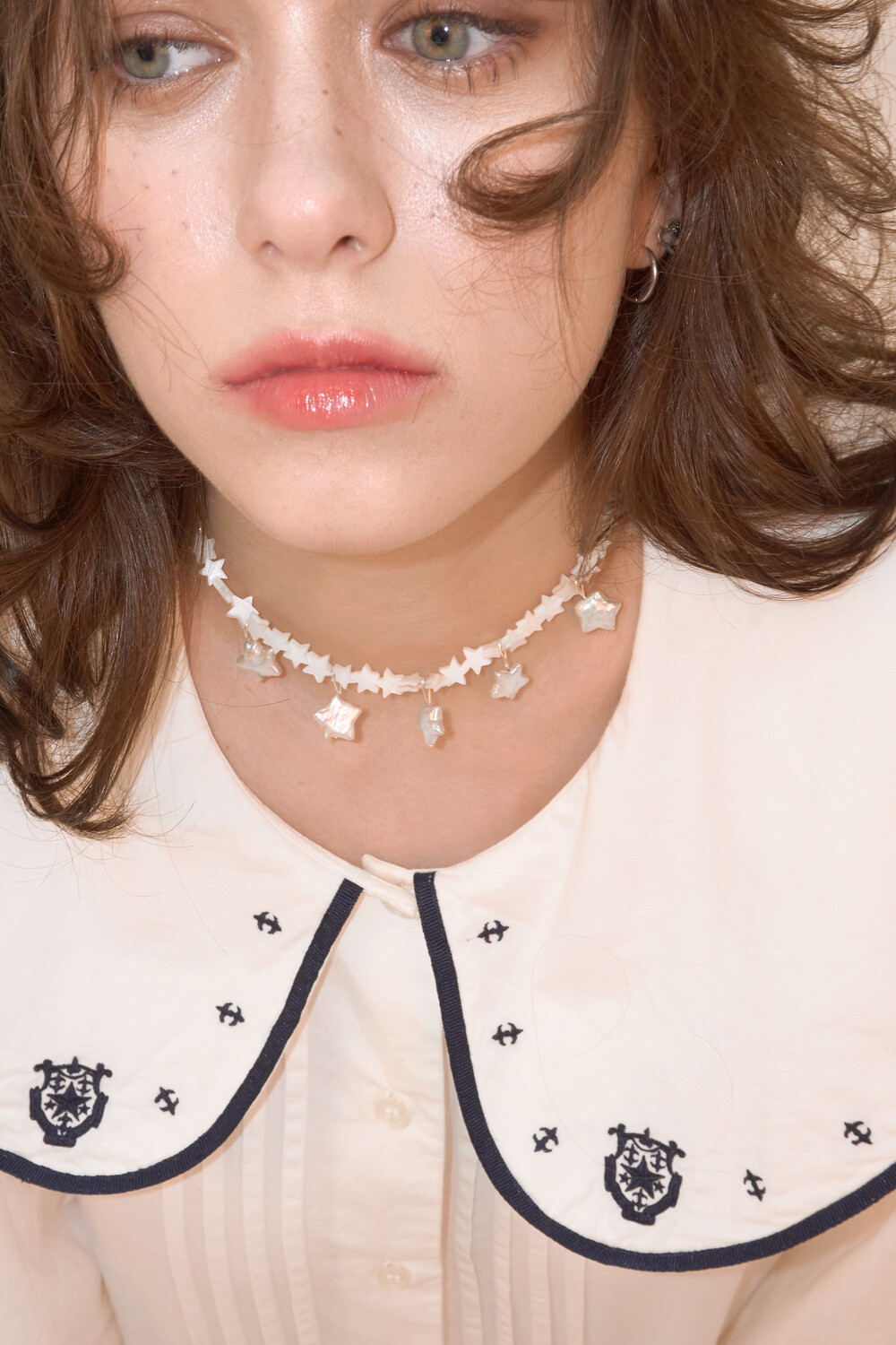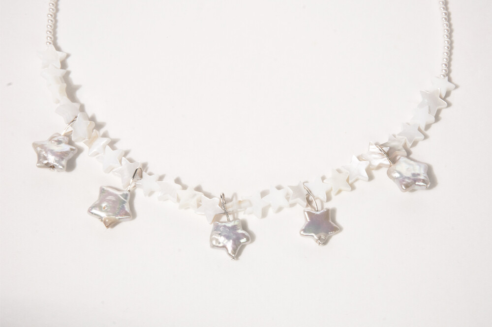 별모양 담수 진주와 별모양 자개로 이루어진 네크리스입니다.