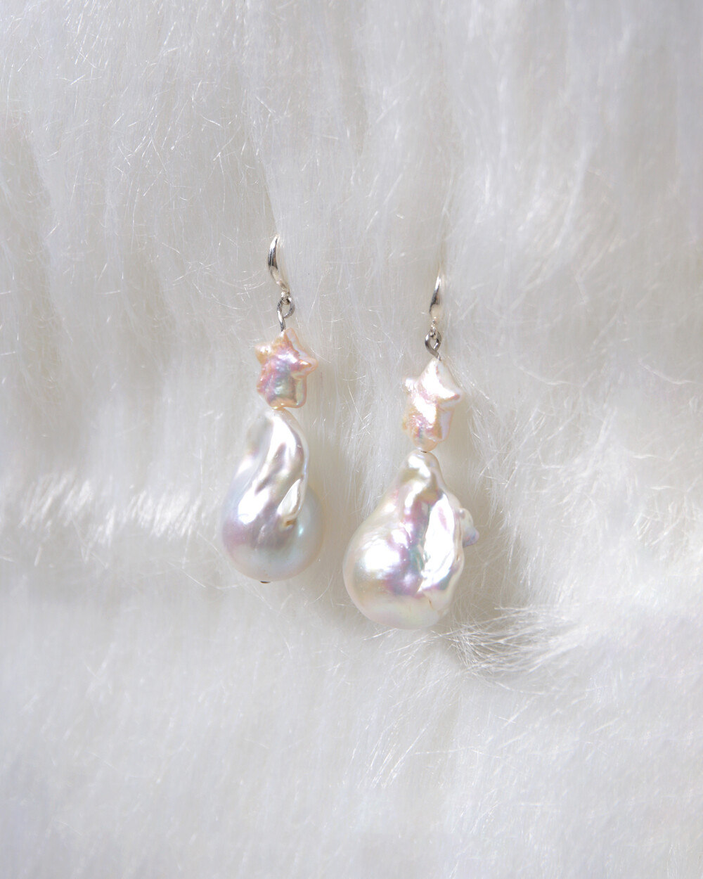 ✔️별모양 형태의 고급 담수 진주로 제작된 포인트이어링입니다.