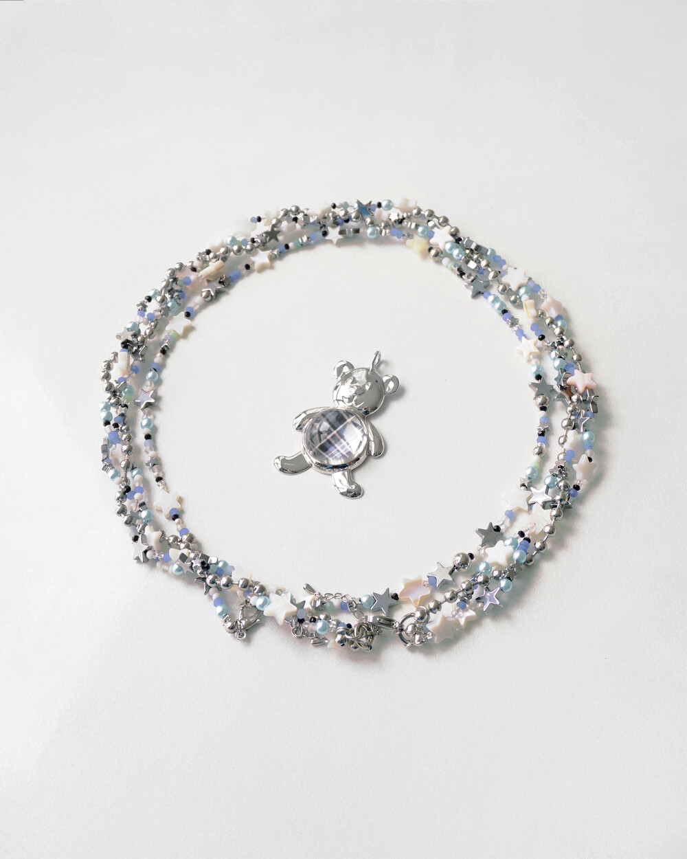 한 줄 네크리스는 테디 팬던트가 더 포인트됩니다. 세줄꼬임 네크리스는 의도했던 밤하늘의 은하수가 더 잘 표현되었습니다.